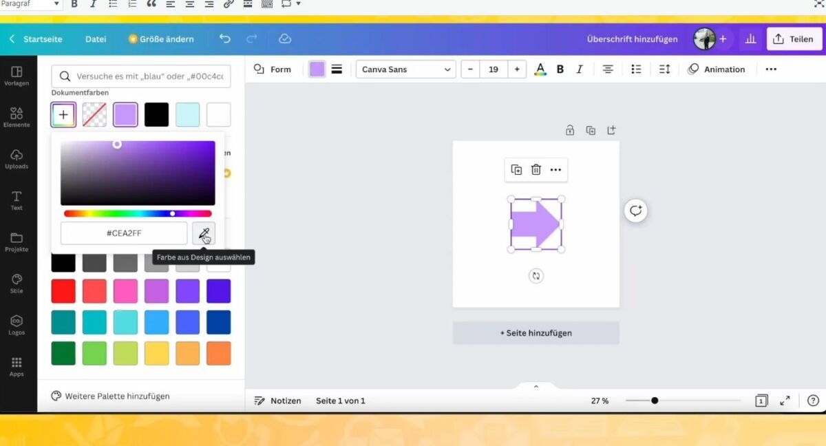 Klik menu “Elements” untuk menambahkan shape, garis, ikon, dan lainnya.